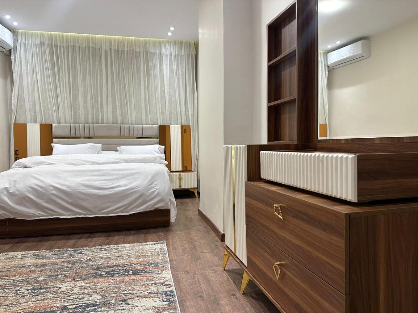 Three-Bedroom Apartment. Guests will have a special experience as the apartment features a fireplace. This spacious apartment comprises a kitchen, a seating area, 2 separate bedrooms and 3 bathrooms with a walk-in shower and a bath. The apartments kitchen is available for cooking and storing food. The air-conditioned apartment provides a flat-screen TV, a washing machine, soundproof walls, a wardrobe as well as garden views. The unit offers 3 beds.